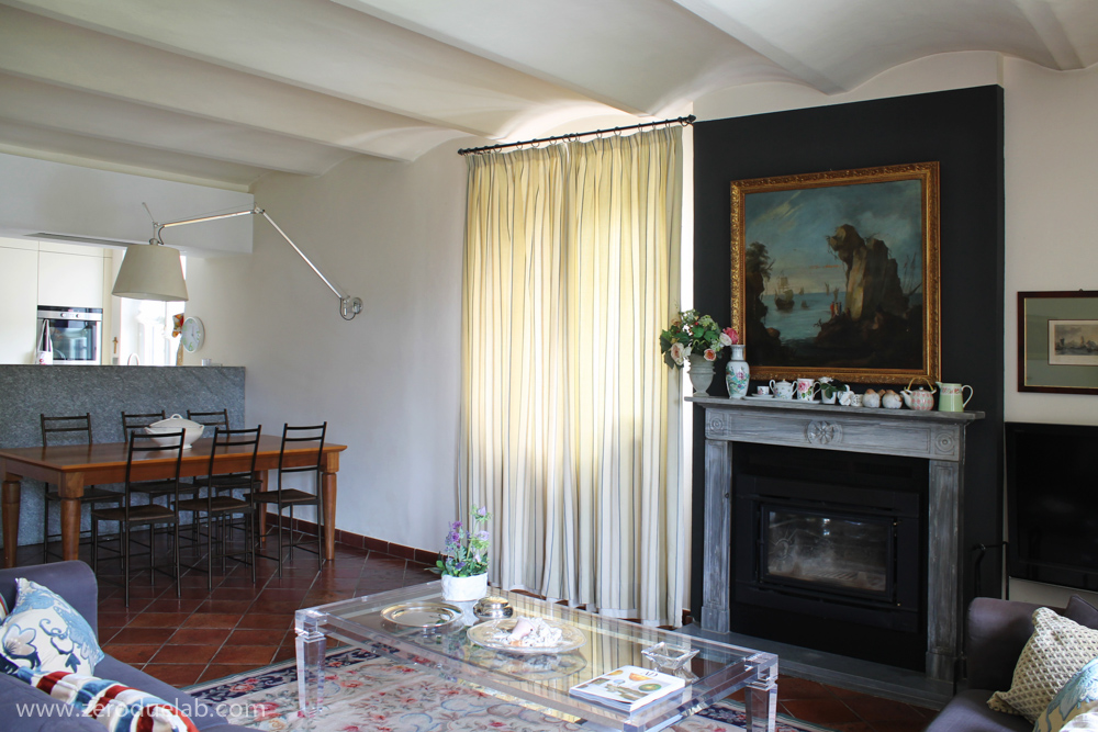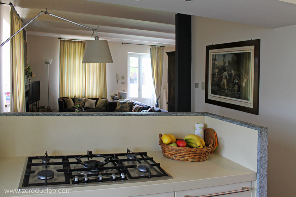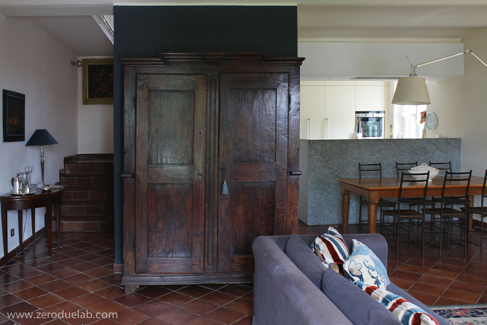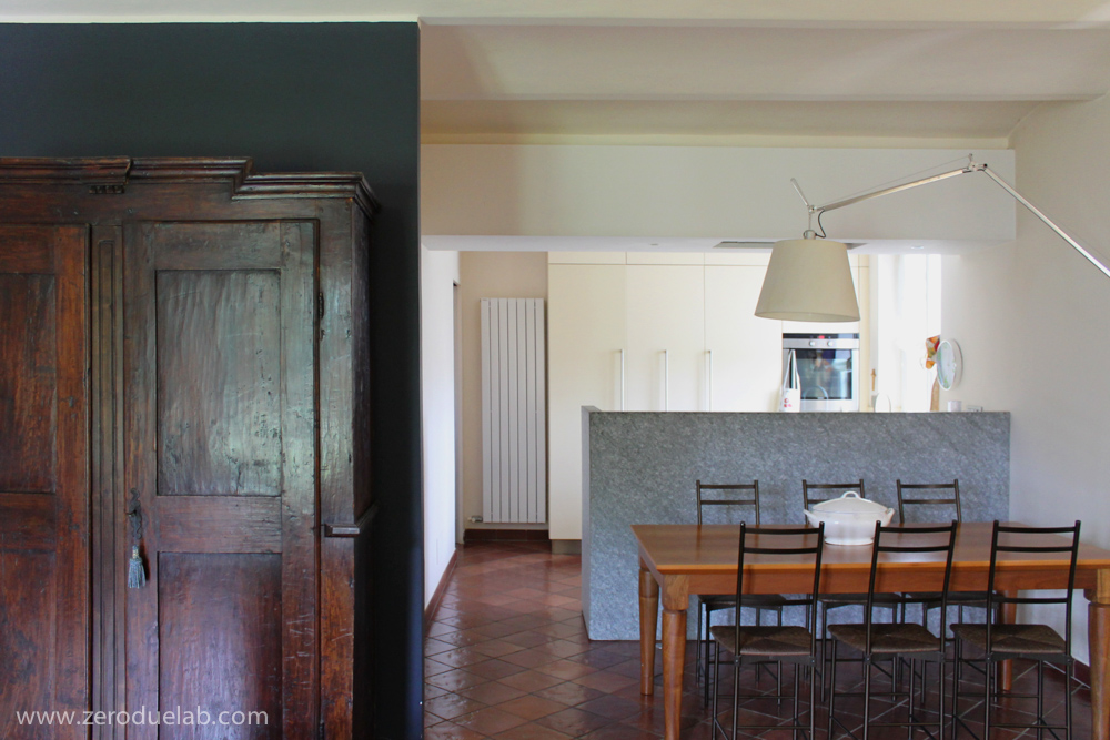 Ristrutturazione interna di una porzione di residenza di campagna. L’intervento, tenendo conto delle preesistenze e delle esigenze dei committenti, è volutamente sottotono. Materiali naturali e pochi elementi di design che si inseriscono con discrezione dove i mobili di famiglia hanno il loro giusto risalto. Cucina incassata e schermata da un setto in pietra fiammata. Finiture dai toni neutri nei bagni, intonaci a calce, gres effetto pietra e quercia spazzolata. Mobili su disegno.