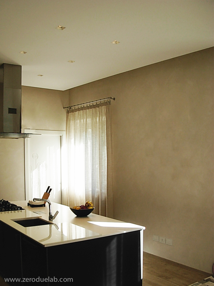 Il progetto ha previsto l’ampliamento di una unità abitativa. I locali particolarmente alti sono stati ribassati lasciando comunque percepire l’altezza originale sulla fascia perimetrale lungo le pareti esterne. Toni neutri per le pareti a calce e pavimento in gres effetto legno. Gli ampi spazi sono stati arredati con l’utilizzo di pochi mobili e tanta luce filtrante dalle vetrate che si affacciano sul giardino antistante.