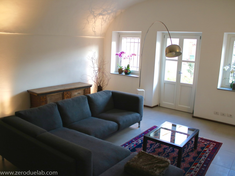 L’edificio, costruito verso la fine dell’Ottocento e dai tipici caratteri rurali, si trova all’interno della fitta maglia urbana che, sviluppandosi nel tempo lo ha inglobato nel suo tessuto. La volontà della committenza nel mantenerne le caratteristiche storiche ed architettoniche ha portato ad un intervento filologico e conservativo, operando in modo incisivo soltanto per le opere di consolidamento e di risanamento. Gli spazi, volutamente essenziali, quasi monastici, le aperture irregolari e i materiali esistenti e conservati lasciano leggere chiaramente i volumi ed i percorsi dell’edificio, restituendolo alla contemporaneità con la bellezza austera e tipica delle costruzioni di quel tempo. Solamente i locali di servizio sono stati ripensati e progettati in base alle attuali esigenze. Mobili di famiglia e pochi elementi di design concorrono a creare un’atmosfera sobria e rilassata, lontana dalle mode del momento.