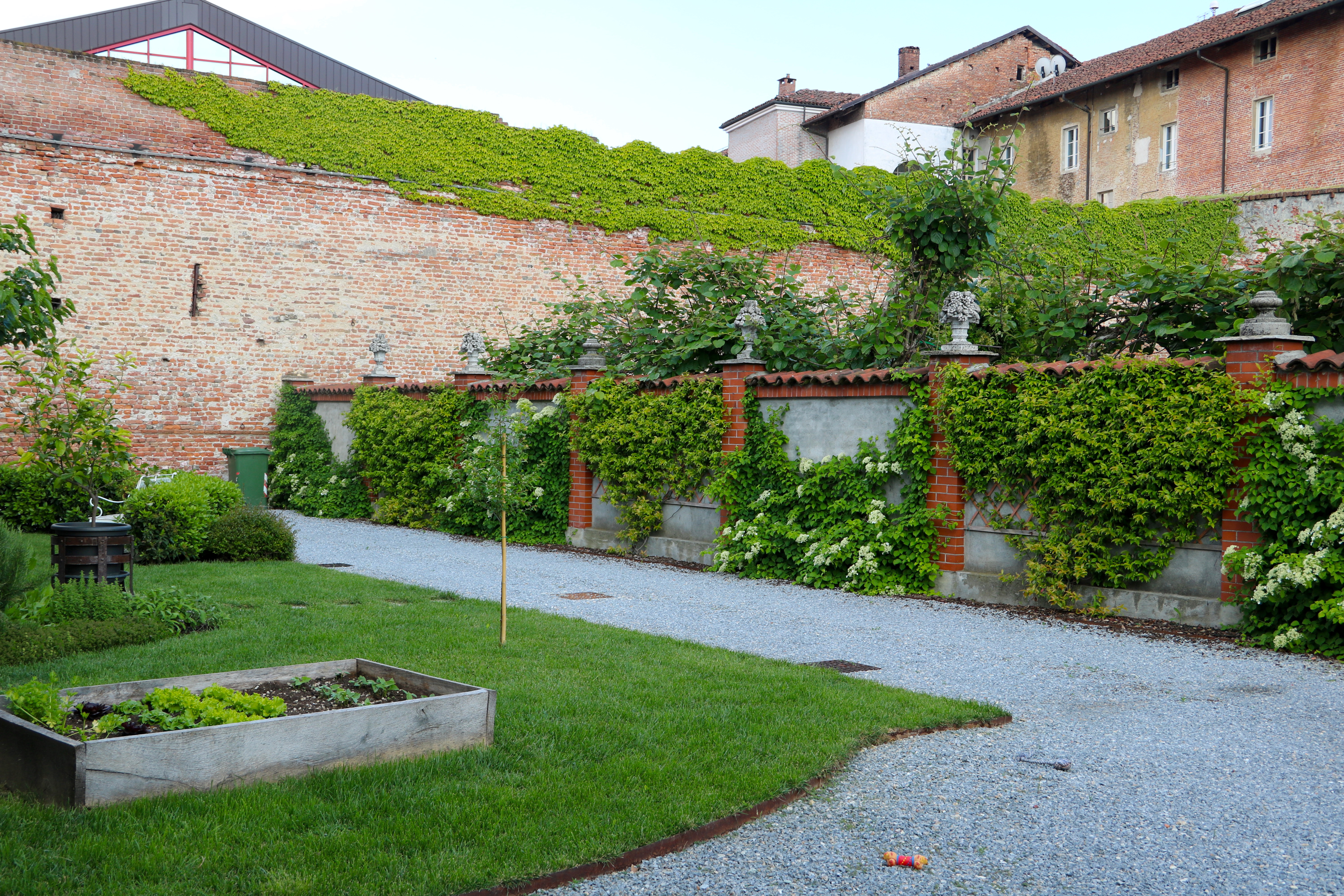 Un giardino recuperato all’interno della fitta maglia urbana. Il sito, completamente chiuso sui quattro lati, fruibile anche nelle belle giornate invernali grazie alla favorevole esposizione. Un giardino segreto pensato, disegnato, dove il nuovo, l’esistente e gli elementi recuperati si integrano a vicenda. Rose antiche e piante di memoria, vasche per ortaggi e il gelso, a testimonianza della destinazione di coltura ottocentesca del sito.