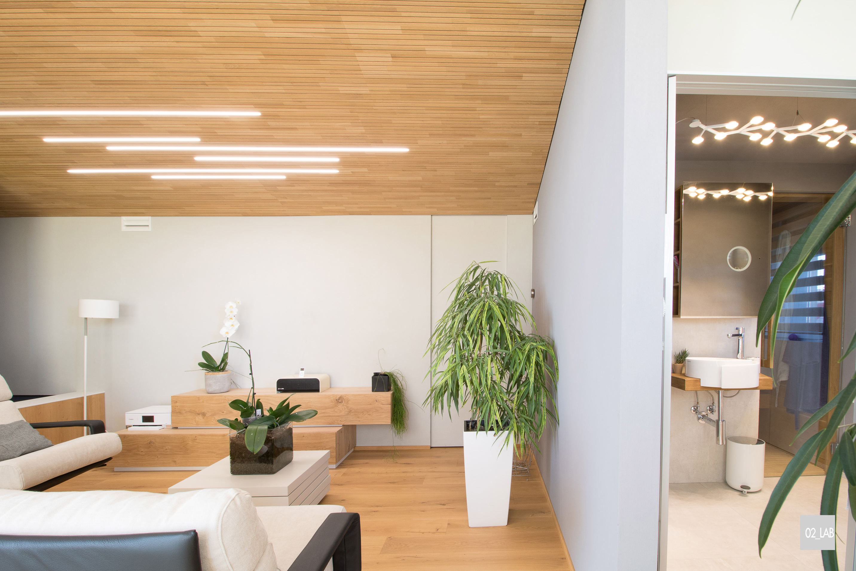 La ricerca del confort psicofisico ha guidato il progetto di ristrutturazione fin dall’inizio. La committenza, attenta ed informata, ha orientato e indirizzato le scelte tese a risolvere alcune criticità che spesso si trovano anche negli edifici di recente costruzione. Materiali naturali, pannelli fonoassorbenti ed isolanti e legni naturali sono stati gli ingredienti per migliorare la qualità di vita all’interno degli spazi. Illuminazione a volte diffusa , altre puntuale crea scenari domestici sempre diversi , da cambiare a seconda delle esigenze e delle mutevoli attività nell’arco della giornata. Una micro SPA con bagno turco e sauna completano la ricerca del piacere di stare a casa.
